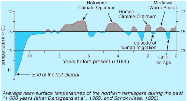 Comme vous le voyez, l’humanité en a connu d’autres. Et ces réchauffements furent des périodes favorables aux conditions de vie de l’humanité. Mais la pauvre petite Greta Thunberg a peur du climat plus que du grand méchant loup et quand une idée est ancrée dans l’opinion publique, inutile de la combattre…