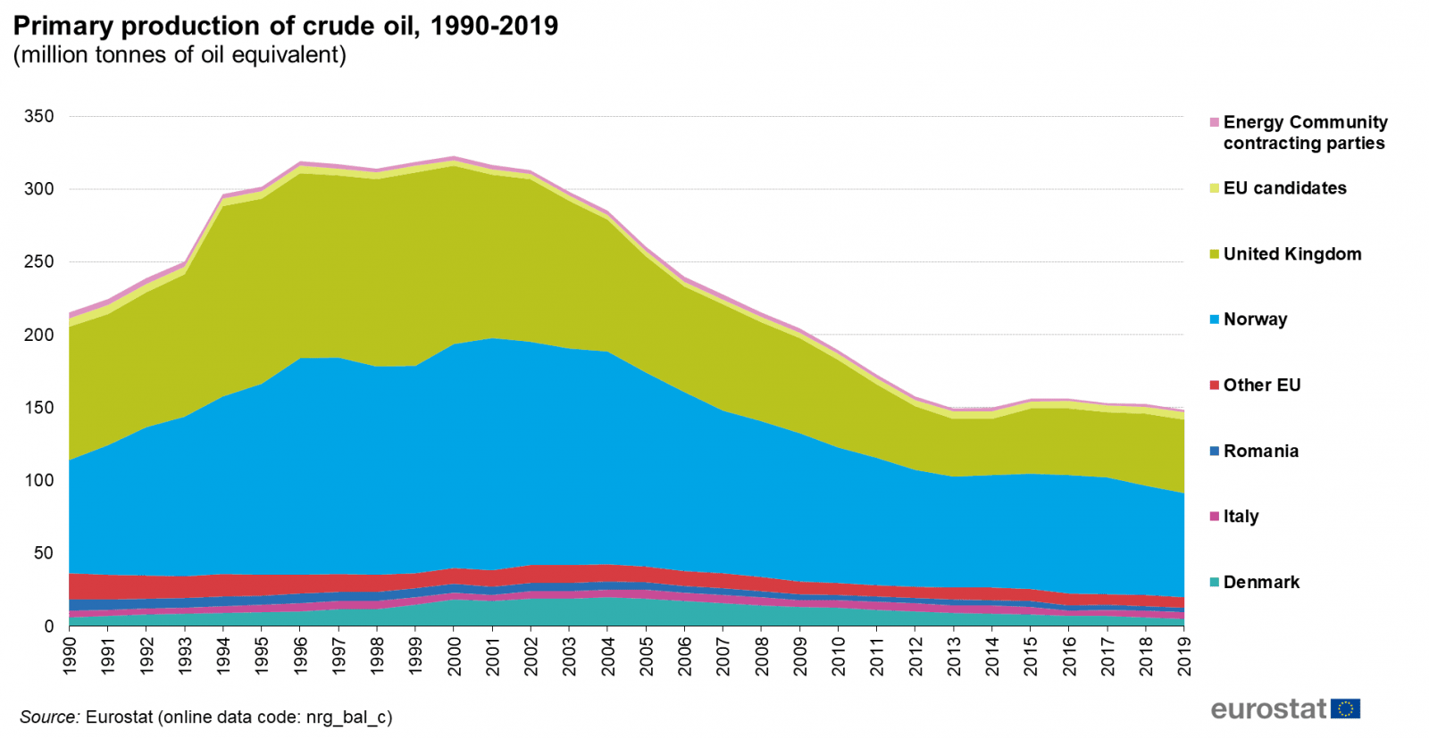 La production de pétrole et de gaz en Europe a chuté de moitié depuis l'an 2000…